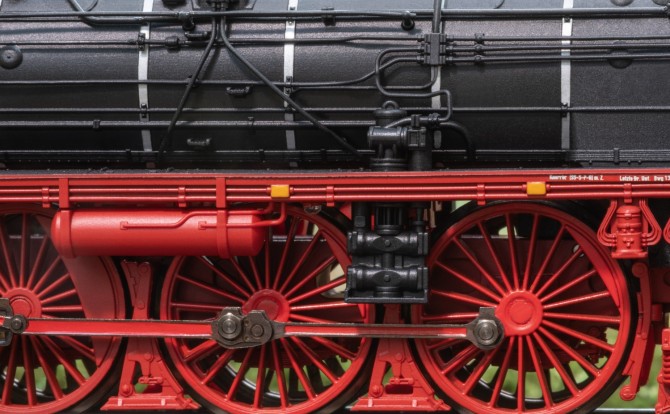 Mit den silbernen Kesselringen und unzähligen separat angesetzten filigranen Details wie Leitungen, Griffstangen, Laternen, Aufstiegen, Fahrwerkslampen, Pumpen usw. ist dieser Riese zierlich und imposant zugleich.