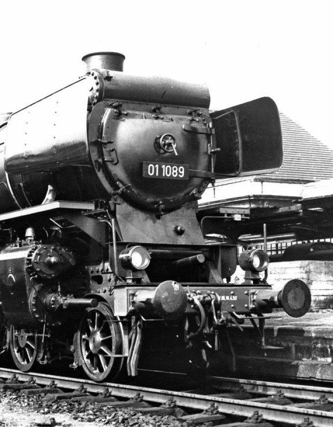 Anfang der 1930er Jahre kristallisierte sich bei der Deutschen Reichsbahn (DRG) ein Bedarf an weiteren und leistungsfähigeren Schnellzuglokomotiven heraus. Die vorhandenen Lokomotiven der Baureihen 01 und 03 hatten sich zwar als zuverlässige Konstruktion erwiesen, waren aber "nur" für eine Höchstgeschwindigkeit von 120 km/h (später auch 130 km/h) zugelassen. Um höhere Geschwindigkeiten fahren zu können, wurde eine Weiterentwicklung des Konzeptes der 01er bzw. 03er nötig. So wurden 1939 204 stärkere 3-Zylinder Lokomotiven der Baureihe 01.10 bei verschiedenen Herstellern bestellt. Der ursprünglich ermittelte Bedarf lag laut der Deutschen Reichsbahn sogar bei 400 Maschinen! Durch die Kriegsereignisse und die damit verbundene Neuausrichtung der Produktion von Lokomotiven, wurden schlussendlich nur 55 Lokomotiven der neuen Baureihe 01.10 abgeliefert. Die Lokomotiven wurden von Anfang an mit einer Stromlinienverkleidung konzipiert, um bei den angestrebten hohen Geschwindigkeiten von mindestens 150 km/h ein besseres Leistungsverhältnis im Vergleich zum Kohleverbrauch zu erzielen. Nach dem Krieg befanden sich alle Lokomotiven im Westteil Deutschlands und somit auf dem Gebiet der neu entstehenden Deutschen Bundesbahn. Die Lokomotiven waren wegen der mangelnden Pflege und kaum mehr vorhandenen Ressourcen, allesamt in einem äußerst schlechten Zustand. Da Lokomotiven mit Stromlinienverkleidung in der Pflege deutlich aufwendiger sind, waren an vielen Maschinen die Verkleidungen zwischenzeitlich ganz oder teilweise entfernt worden. Aufgrund des recht schlechten Zustandes und der Tatsache, dass es in den Nachkriegsjahren keinen Bedarf für so schnelle Lokomotiven gab, wurde die gesamte Baureihe zunächst ausgemustert. Aufgrund des chronischen Lokmangels und weil die Loks meist nicht mehr als 500.000 Kilometer gefahren waren, entschloss man sich schließlich die Baureihe doch einer Aufarbeitung zu unterziehen, um sie nach den neuen Bedürfnissen wieder einsetzen zu können. Dabei wurden die Stromlinienverkleidungen komplett entfernt und Witte-Windleitbleche montiert. Die ursprünglichen hohen Geschwindigkeiten konnten nach dem Krieg ohnehin nicht gefahren werden und machten die Verkleidungen technisch obsolet. Obwohl die Kessel erste Ermüdungserscheinungen aufwiesen, blieben sie den Lokomotiven zunächst erhalten. Dadurch ergab sich nun ein völlig neues Erscheinungsbild dieser Lokbaureihe. Vor allem durch den quer auf der Rauchkammer liegenden Oberflächenvorwärmer entsprachen die Loks nicht dem üblichen Bild einer Einheitslokomotive. Somit waren ab 1949 nach und nach 54 der ursprünglich 55 Maschinen wieder einsatzfähig. Die 01 1067 wurde aufgrund der starken Beschädigungen endgültig ausgemustert.